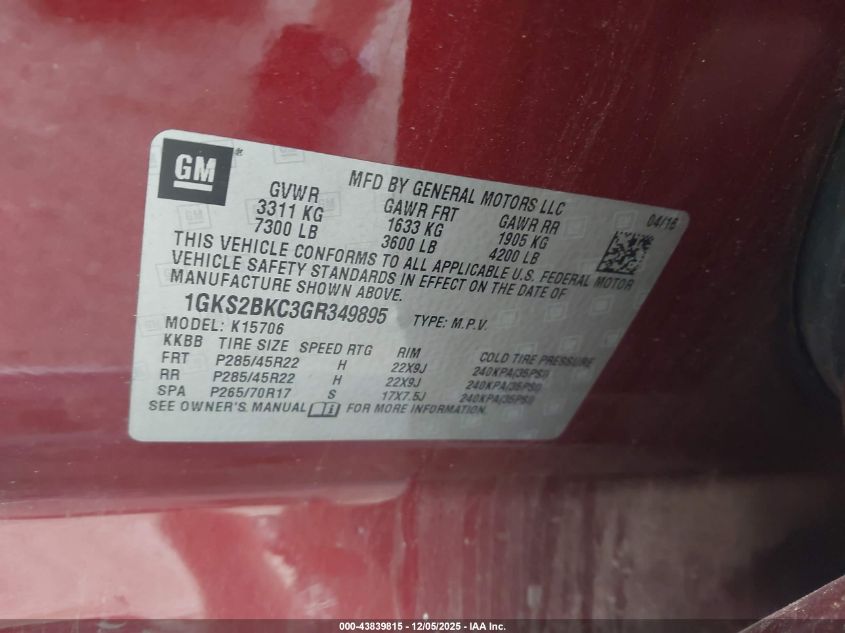 2016 GMC YUKON 2016 року Бензин, 5.3, Полный привод, vin - 1GKS2BKC3GR349895 из США