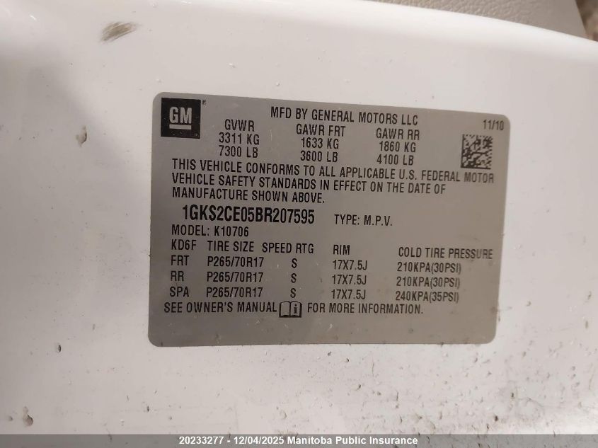 Цвет БелыйЦилиндры 8Привод Полный приводVIN 1GKS2CE05BR207595Состояние ЗаводитсяПовреждения ПередняяДата аукциона 2025-12-10