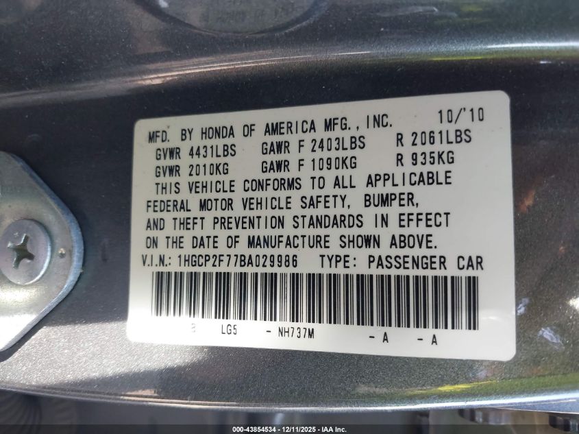2011 HONDA ACCORD 2011 року Бензин, 2.4, Передний привод, vin - 1HGCP2F77BA029986 из США