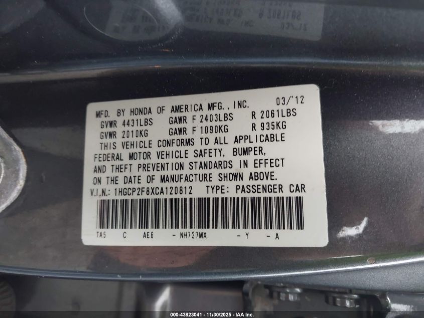 2012 HONDA ACCORD 2012 року Бензин, 2.4, Передний привод, vin - 1HGCP2F8XCA120812 из США