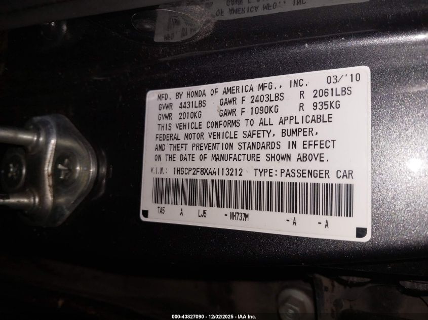 2010 HONDA ACCORD 2010 року Бензин, 2.4, Передний привод, vin - 1HGCP2F8XAA113212 из США