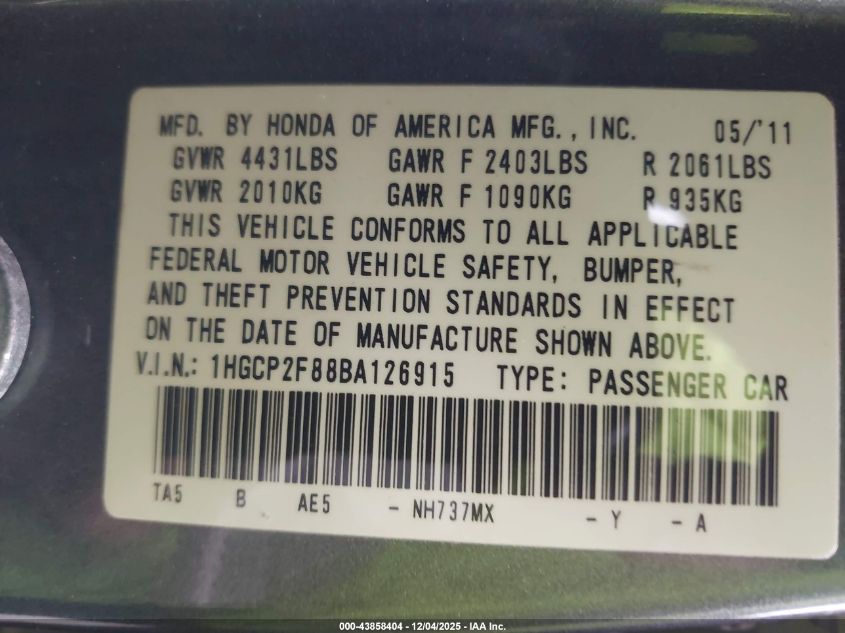 2011 HONDA ACCORD 2011 року Бензин, 2.4, Передний привод, vin - 1HGCP2F88BA126915 из США