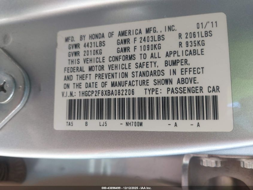2011 HONDA ACCORD 2011 року Бензин, 2.4, Передний привод, vin - 1HGCP2F8XBA082206 из США