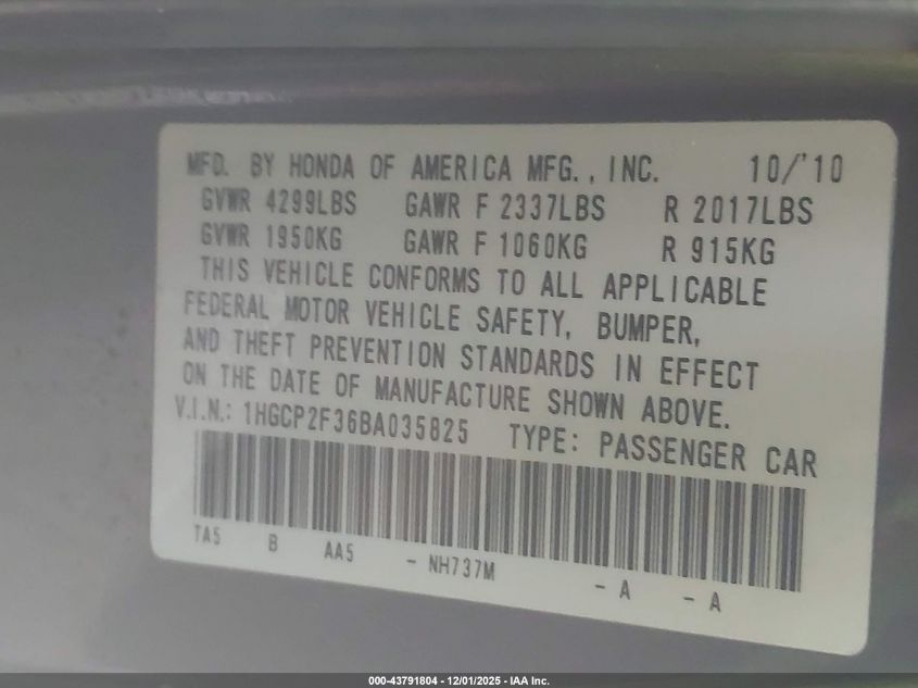 Цвет СерыйЦилиндры 4Привод Передний приводVIN 1HGCP2F36BA035825Состояние Заводится и едет (проверено)Повреждения Передняя или задняя AutoRIA