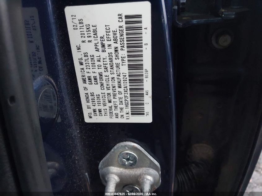 2012 HONDA ACCORD 2012 року Бензин, 2.4, Передний привод, vin - 1HGCP2F3XCA109247 из США