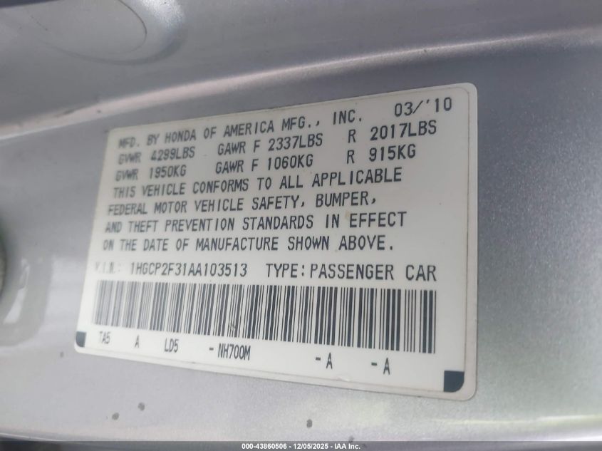 2010 HONDA ACCORD LX