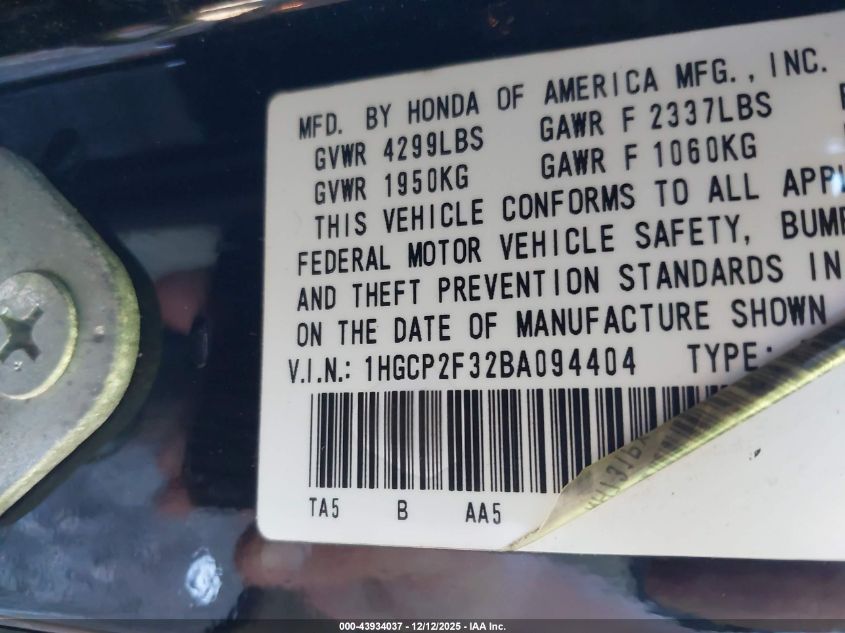 Цвет ЧерныйЦилиндры 4Привод Передний приводVIN 1HGCP2F32BA094404Состояние Заводится и едет (проверено)Повреждения Передняя или задняя AutoRIA