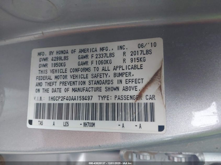 2010 HONDA ACCORD LX