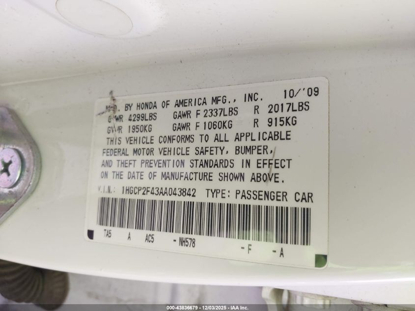 2010 HONDA ACCORD 2010 року Бензин, 2.4, Передний привод, vin - 1HGCP2F43AA043842 из США