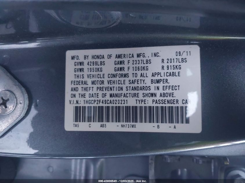Цвет СерыйЦилиндры 4Привод Передний приводVIN 1HGCP2F49CA020231Состояние ЗаводитсяПовреждения Передняя или задняя AutoRIA