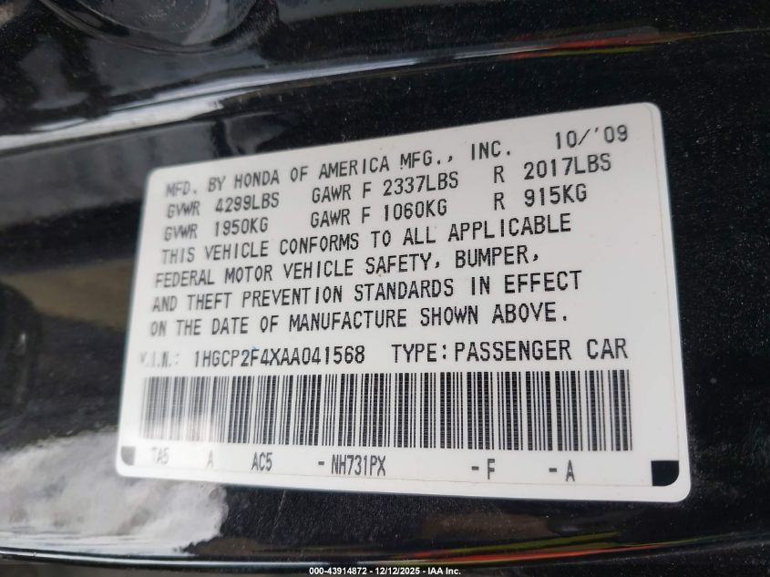 2010 HONDA ACCORD 2010 року Бензин, 2.4, Передний привод, vin - 1HGCP2F4XAA041568 из США