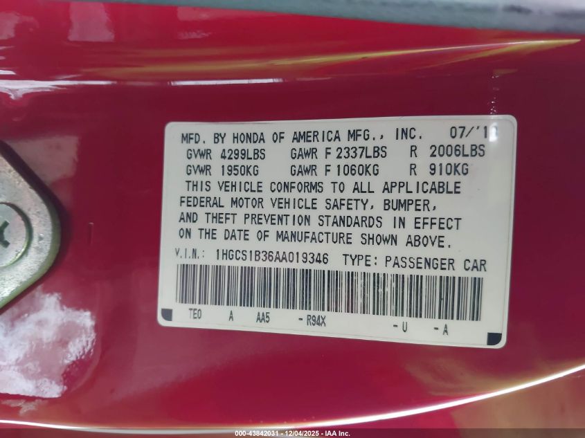 Цвет КрасныйЦилиндры 4Привод Передний приводVIN 1HGCS1B36AA019346Состояние Заводится и едет (проверено)Повреждения Передняя или задняя AutoRIA