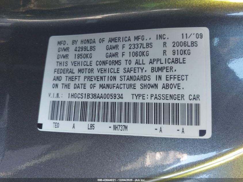 2010 HONDA ACCORD LX