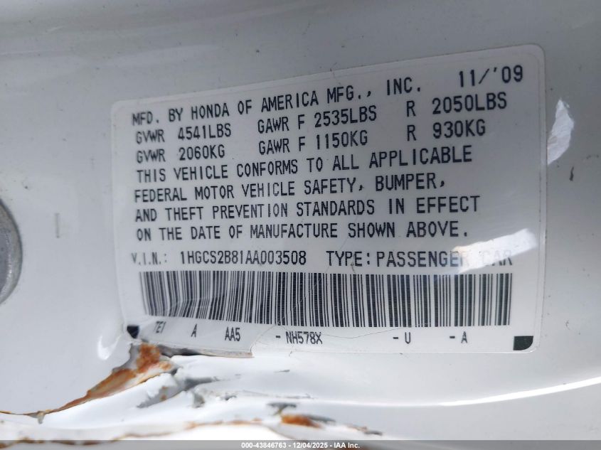 2010 HONDA ACCORD 2010 року Бензин, 3.5, Передний привод, vin - 1HGCS2B81AA003508 из США