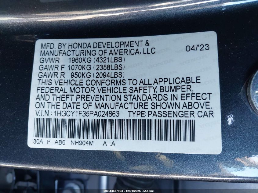 2023 HONDA ACCORD 2023 року Бензин, 1.5, Передний привод, vin - 1HGCY1F35PA024863 из США