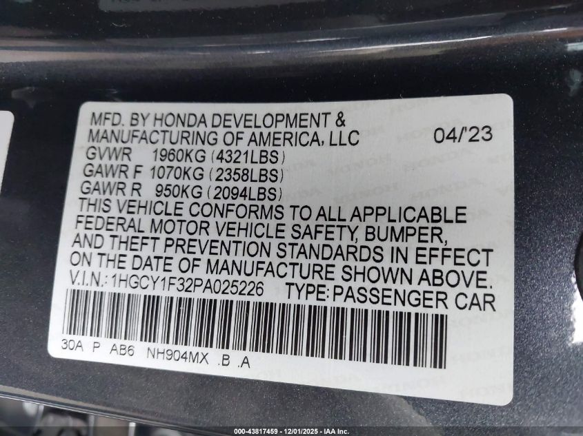 2023 HONDA ACCORD 2023 року Бензин, 1.5, Передний привод, vin - 1HGCY1F32PA025226 из США