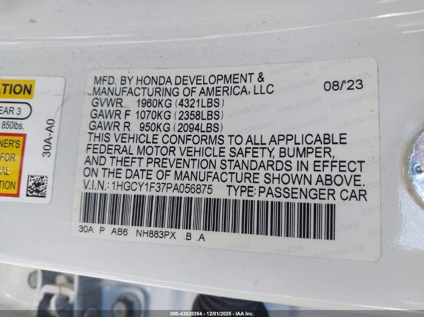 2023 HONDA ACCORD 2023 року Бензин, 1.5, Передний привод, vin - 1HGCY1F37PA056875 из США