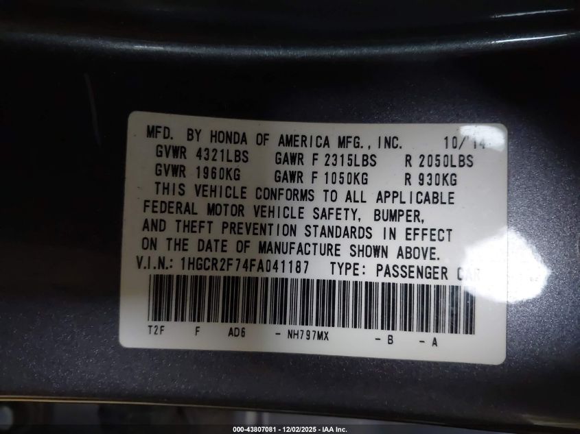 Цвет СерыйЦилиндры 4Привод Передний приводVIN 1HGCR2F74FA041187Состояние Заводится и едет (проверено)Повреждения Передняя или задняя AutoRIA