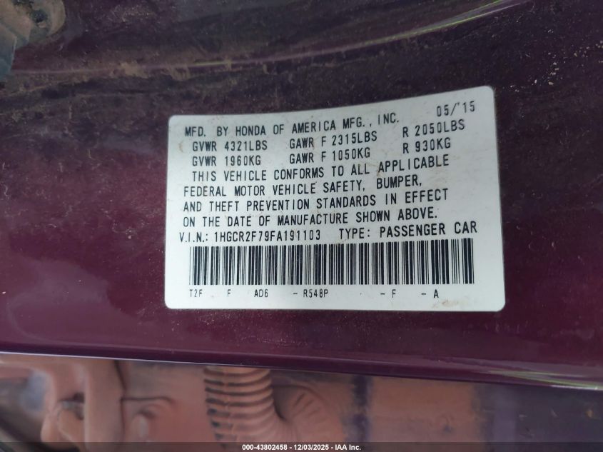 2015 HONDA ACCORD 2015 року Бензин, 2.4, Передний привод, vin - 1HGCR2F79FA191103 из США