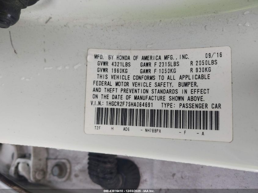 2017 HONDA ACCORD 2017 року Бензин, 2.4, Передний привод, vin - 1HGCR2F75HA064691 из США