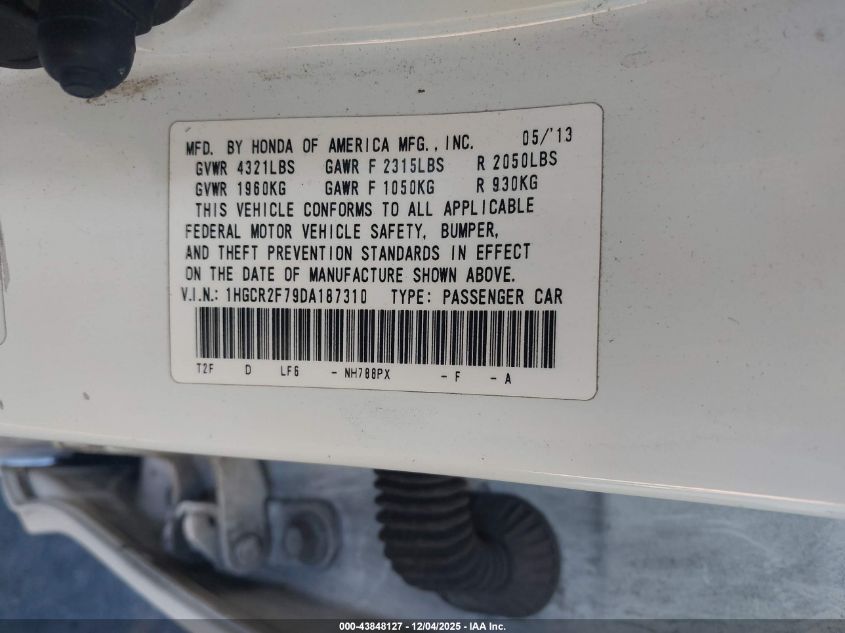 Цвет БелыйЦилиндры 4Привод Передний приводVIN 1HGCR2F79DA187310Состояние СтационарноПовреждения Передняя или задняя AutoRIA