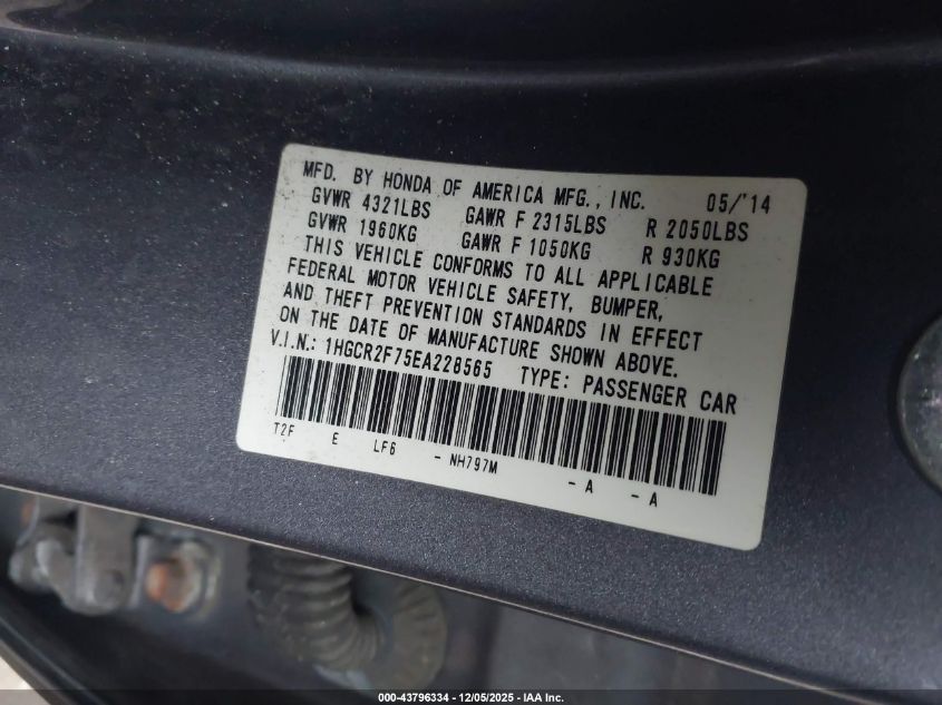 2014 HONDA ACCORD 2014 року Бензин, 2.4, Передний привод, vin - 1HGCR2F75EA228565 из США