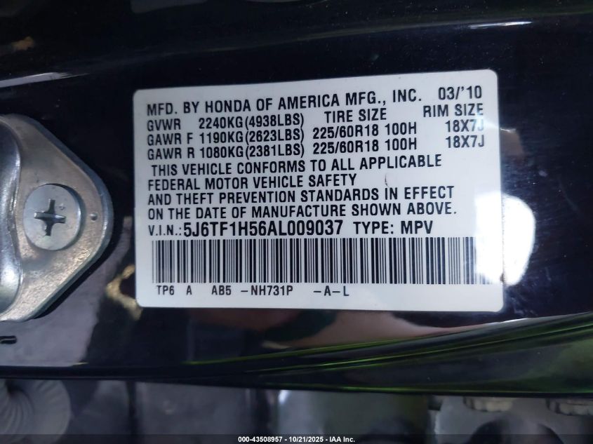 Цвет КрасныйЦилиндры 6Привод Передний приводVIN 5J6TF1H56AL009037Состояние Заводится и едет (проверено)Повреждения Передняя или задняяДата аукциона 2025-12-10 AutoRIA