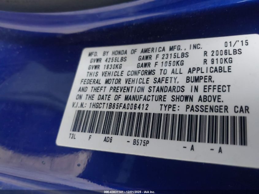 2015 HONDA ACCORD 2015 року Бензин, 2.4, Передний привод, vin - 1HGCT1B85FA006412 из США