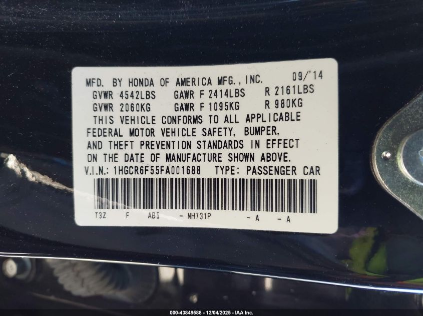 2015 HONDA ACCORD 2015 року Гибрид, 2.0, Передний привод, vin - 1HGCR6F55FA001688 из США