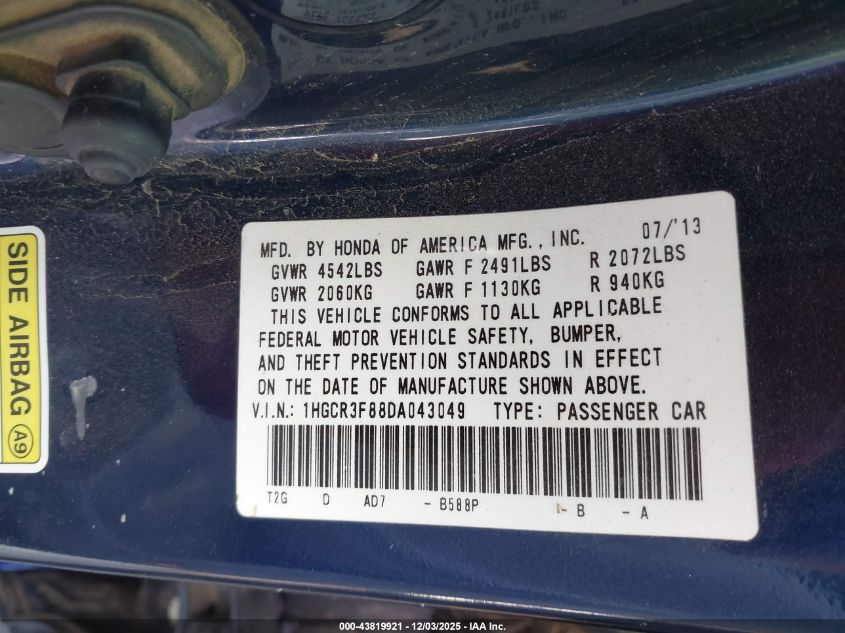 2013 HONDA ACCORD 2013 року Бензин, 3.5, Передний привод, vin - 1HGCR3F88DA043049 из США