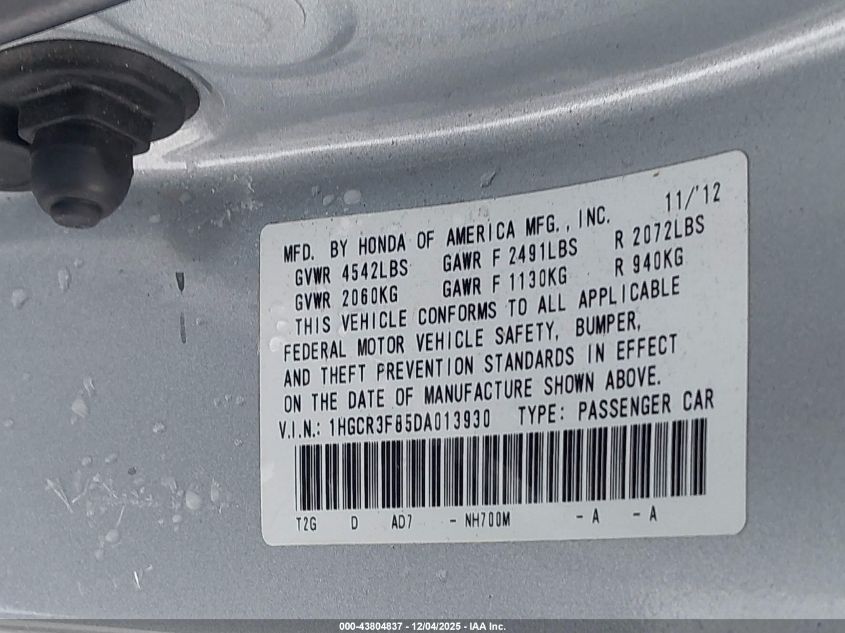 2013 HONDA ACCORD 2013 року Бензин, 3.5, Передний привод, vin - 1HGCR3F85DA013930 из США