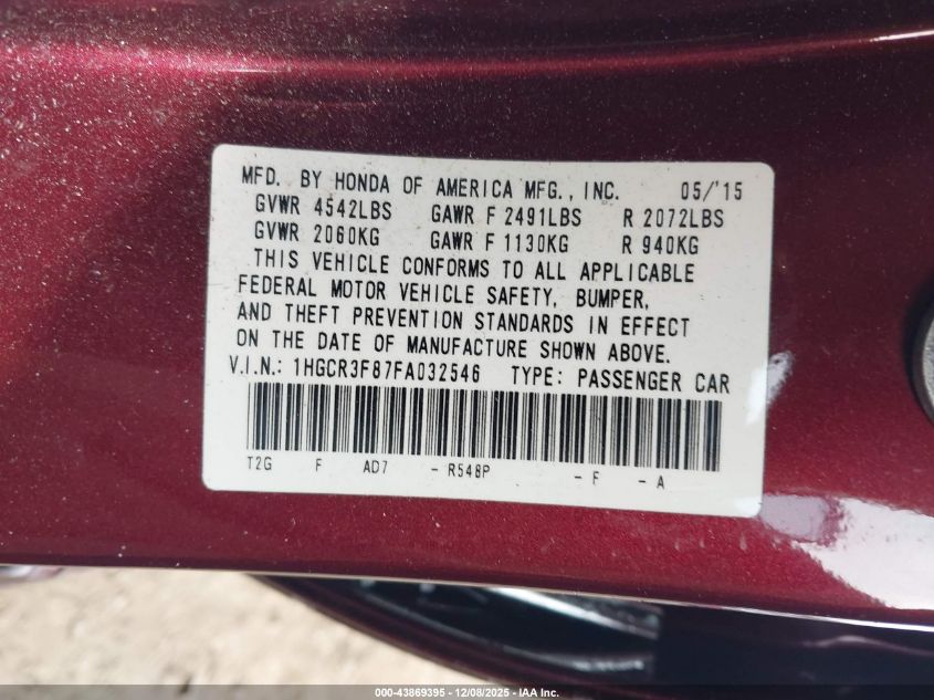 2015 HONDA ACCORD 2015 року Бензин, 3.5, Передний привод, vin - 1HGCR3F87FA032546 из США