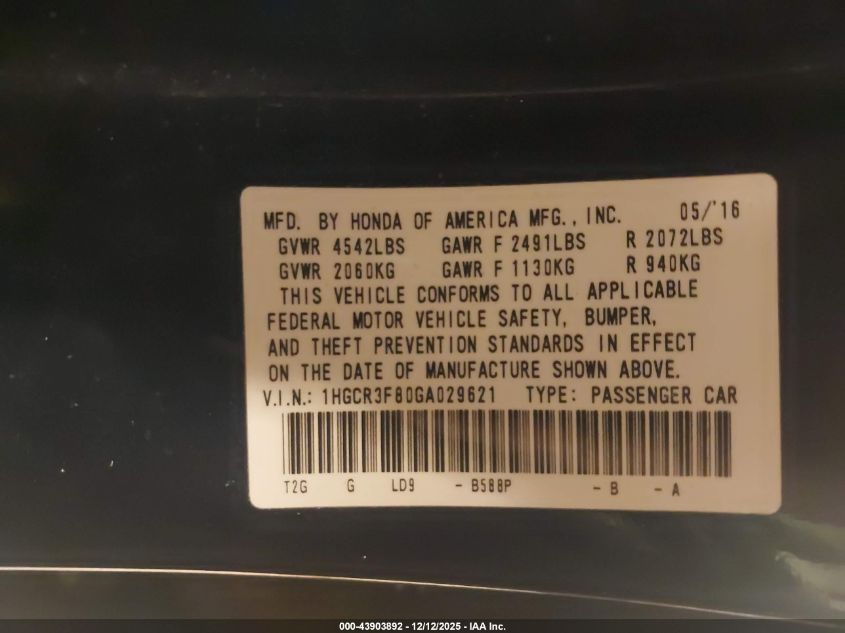 2016 HONDA ACCORD 2016 року Бензин, 3.5, Передний привод, vin - 1HGCR3F80GA029621 из США