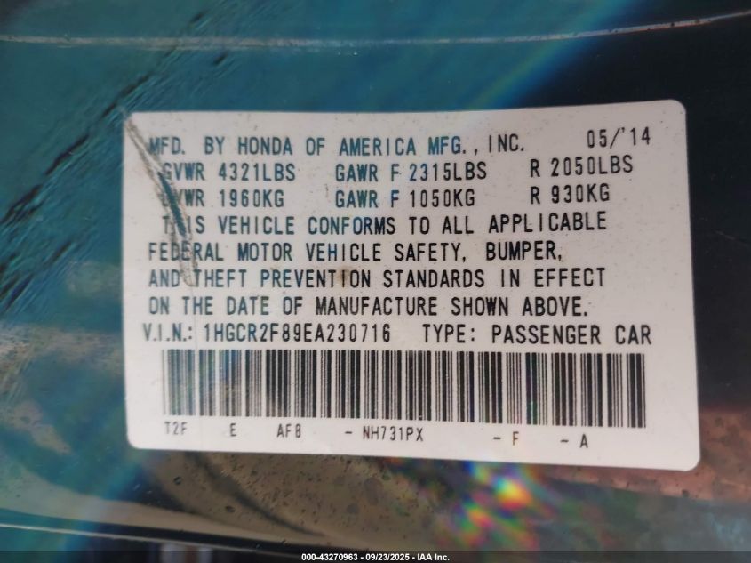 2014 HONDA ACCORD 2014 року Бензин, 2.4, Передний привод, vin - 1HGCR2F89EA230716 из США