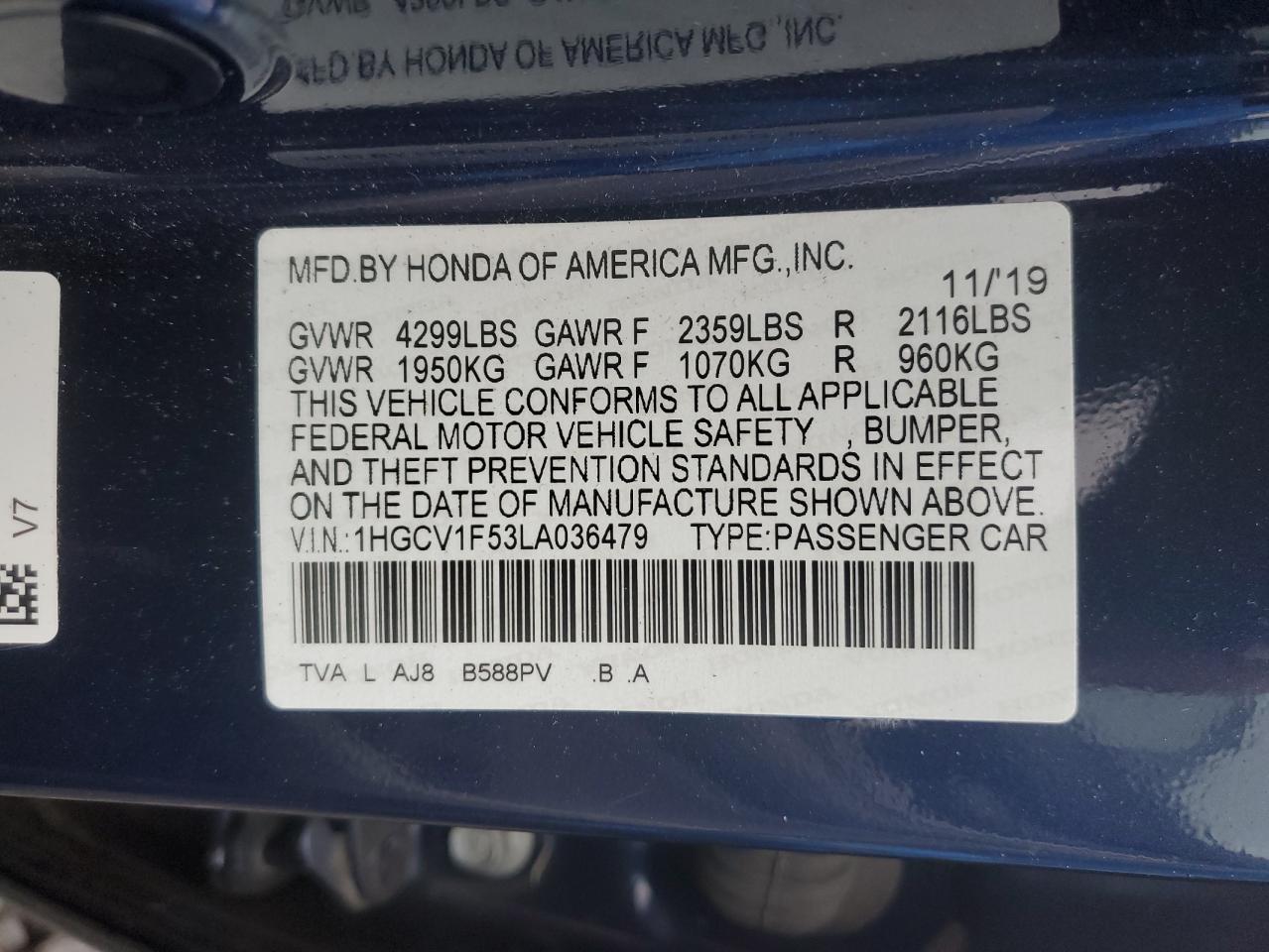 Цвет СинийЦилиндры 4VIN 1HGCV1F53LA036479Состояние Заводится и едет (проверено)Повреждения Задняя AutoRIA
