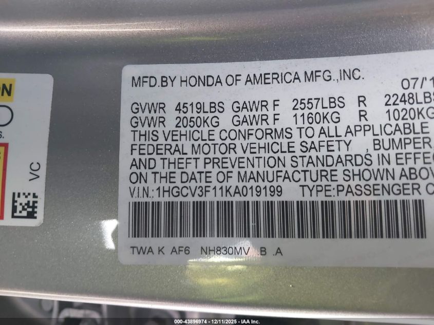 2019 HONDA ACCORD TOURING