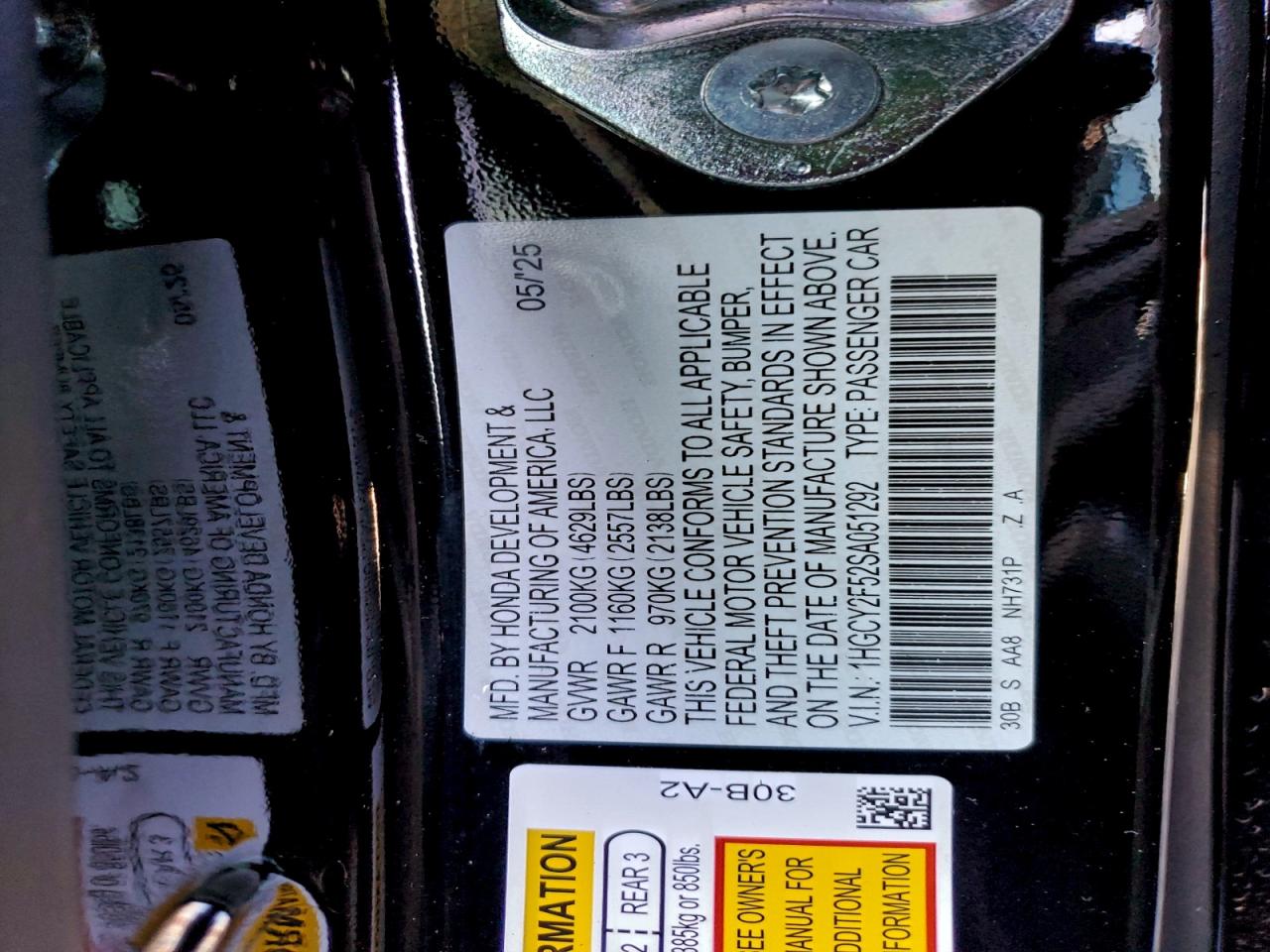 Цвет ЧерныйЦилиндры 4VIN 1HGCY2F52SA051292Состояние НеизвестноПовреждения По всему автоДата аукциона 2025-12-09 AutoRIA