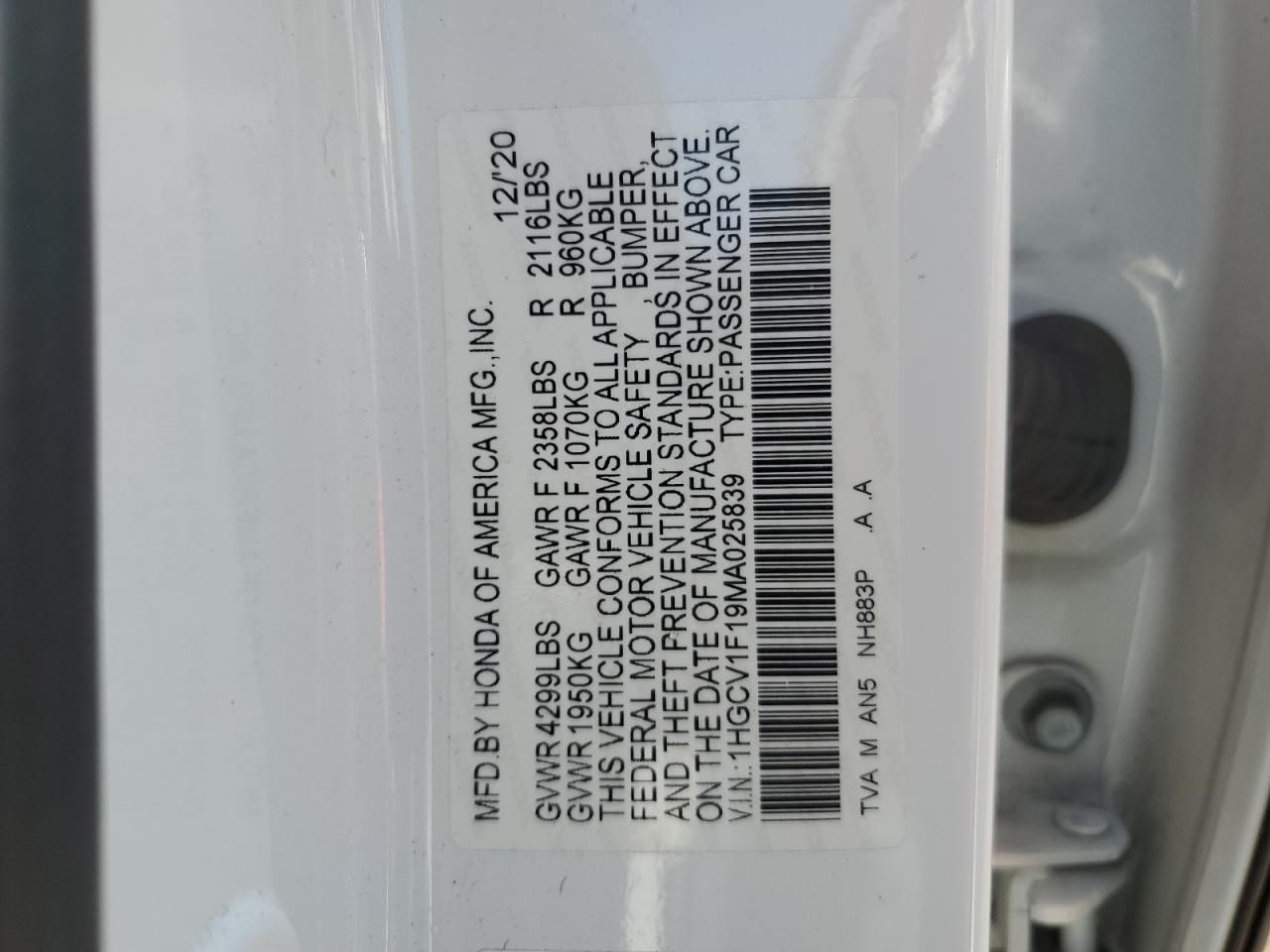 2021 HONDA ACCORD 2021 року Бензин, 1.5, , vin - 1HGCV1F19MA025839 из США