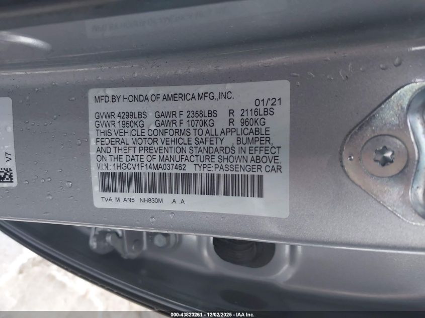 2021 HONDA ACCORD 2021 року Бензин, 1.5, Передний привод, vin - 1HGCV1F14MA037462 из США