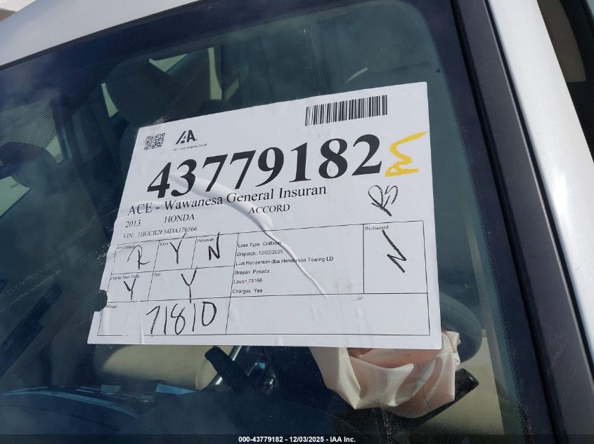2013 HONDA ACCORD 2013 року Бензин, 2.4, Передний привод, vin - 1HGCR2F34DA176566 из США