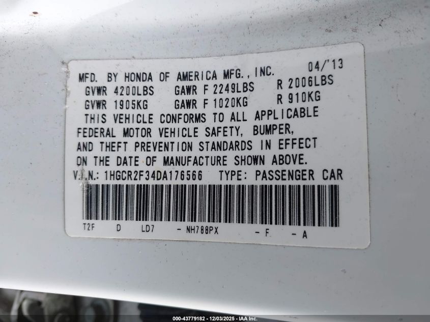 Цвет БелыйЦилиндры 4Привод Передний приводVIN 1HGCR2F34DA176566Состояние Заводится и едет (проверено)Повреждения Передняя или задняя AutoRIA