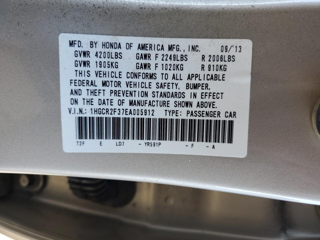2014 HONDA ACCORD 2014 року Бензин, 2.4, , vin - 1HGCR2F37EA005912 из США