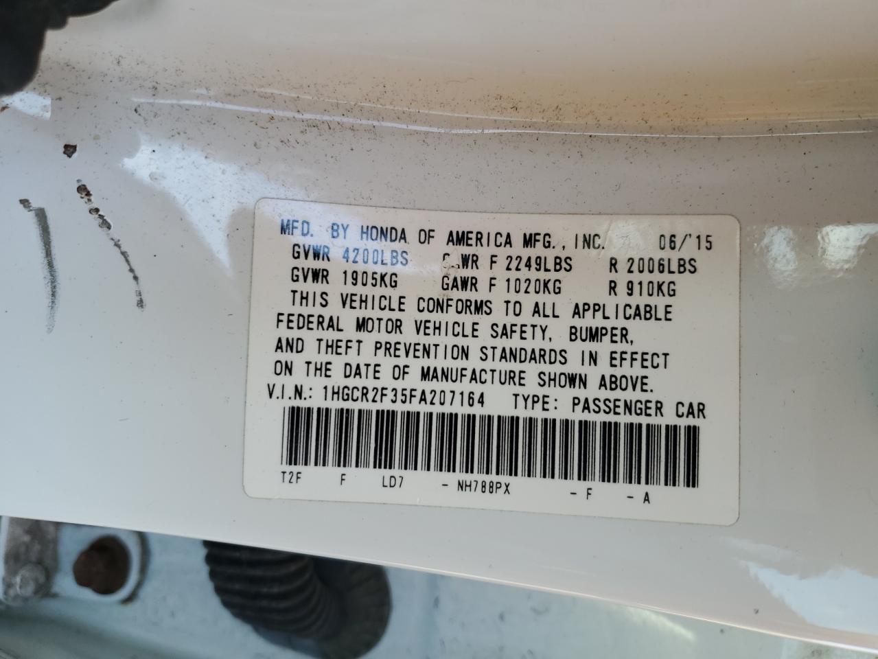 Цвет БелыйЦилиндры 4VIN 1HGCR2F35FA207164Состояние НеизвестноПовреждения Передняя или задняя AutoRIA