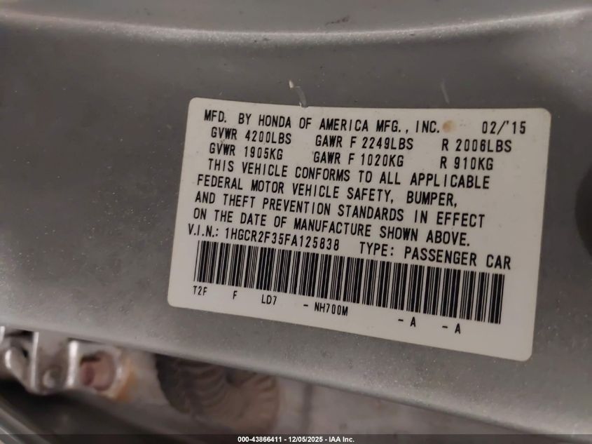 2015 HONDA ACCORD 2015 року Бензин, 2.4, Передний привод, vin - 1HGCR2F35FA125838 из США