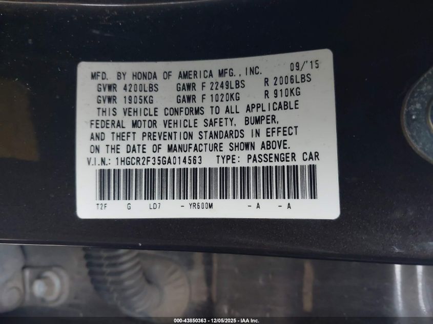 2016 HONDA ACCORD 2016 року Бензин, 2.4, Передний привод, vin - 1HGCR2F35GA014563 из США