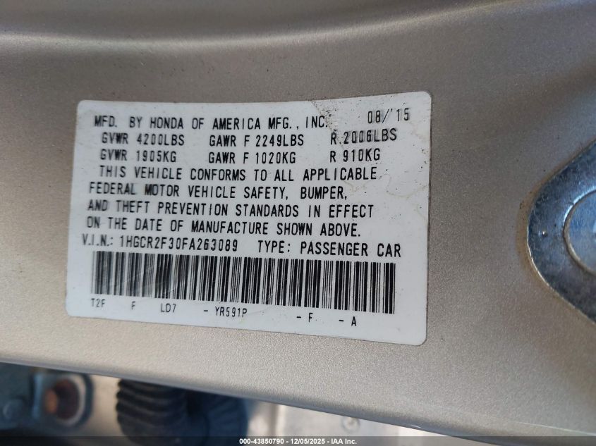 2015 HONDA ACCORD LX