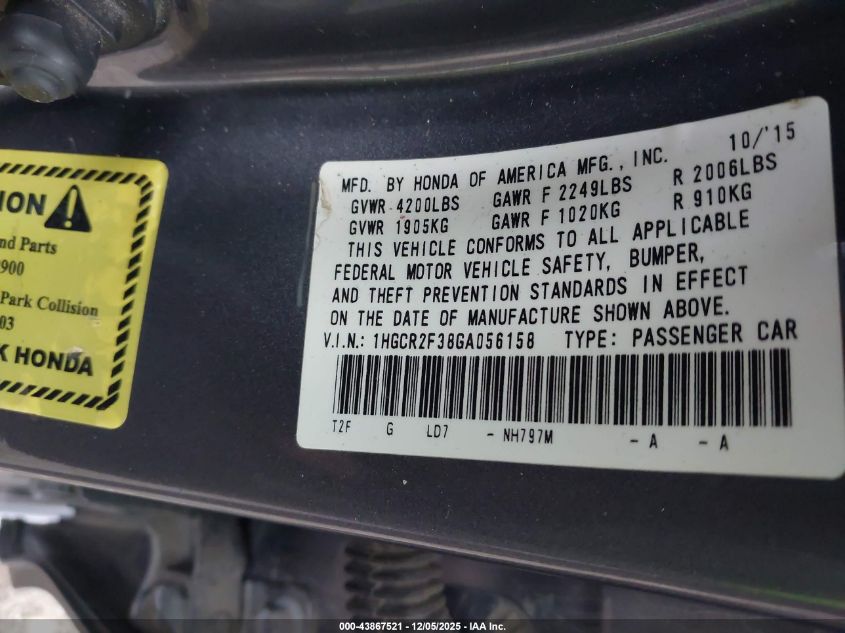 2016 HONDA ACCORD EXL