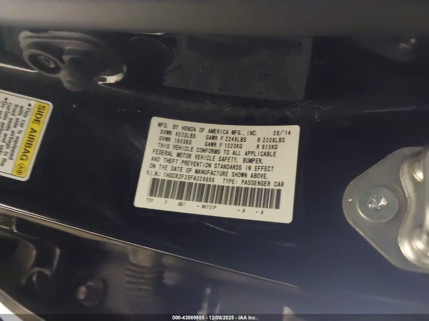 2015 HONDA ACCORD 2015 року Бензин, 2.4, Передний привод, vin - 1HGCR2F35FA028896 из США