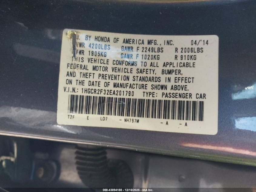 Цвет СерыйЦилиндры 4Привод Передний приводVIN 1HGCR2F32EA201790Состояние СтационарноПовреждения Передняя или задняя AutoRIA