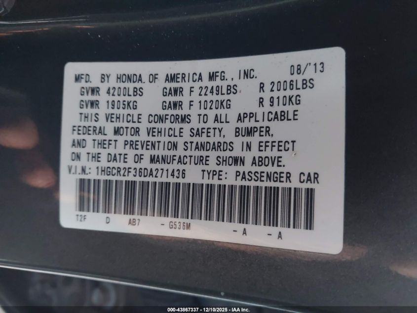 2013 HONDA ACCORD 2013 року Бензин, 2.4, Передний привод, vin - 1HGCR2F36DA271436 из США